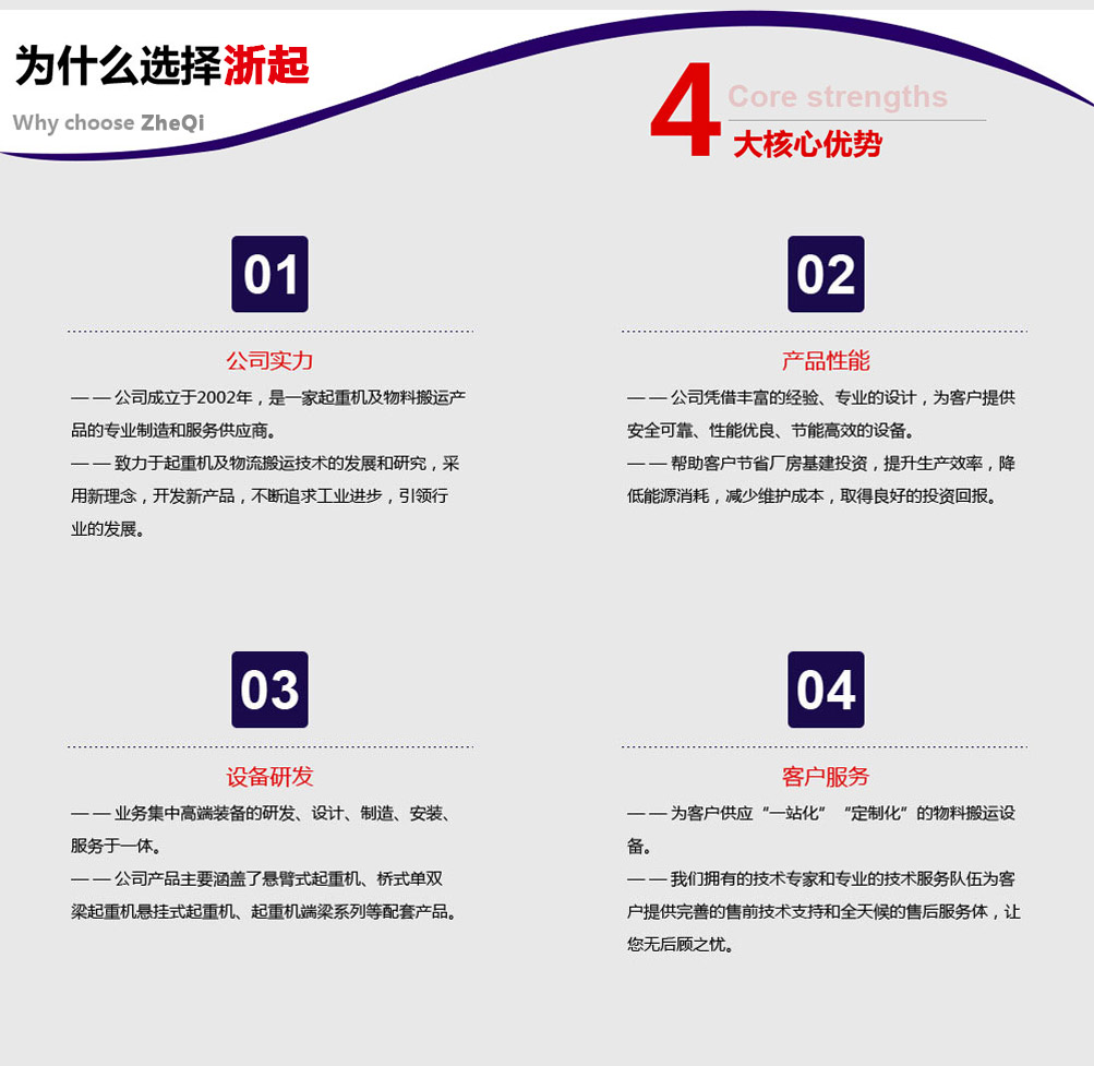 杭州浙起機械有限公司創(chuàng)建于2002年10月,是著名的鋼絲繩電動葫蘆制造商和服務供應商,總部位于風光旖旎的中國旅游城市杭州-富陽。公司自成立以來,不斷引進新技術、運用新工藝、研發(fā)新產(chǎn)品,研制的ZH系列鋼絲繩電動葫蘆,經(jīng)受住了最嚴酷的環(huán)境考驗,無論是在工廠、倉庫、電力、鋼鐵、水泥、造紙、礦山領域,還是在現(xiàn)代物流、軍工制造領域,產(chǎn)品質量和技術性能都始終保持與國際同步。自行設計開發(fā)的ZHz冶金電動葫蘆在國內(nèi)冶金行業(yè)得到了廣泛使用。在鋼絲繩電動葫蘆的設計與制造領域,杭州浙起機械有限公司是行業(yè)的領先者,產(chǎn)品遠銷歐洲、東南亞、南美洲、中東等國和港、澳、臺地區(qū)。 ZH系列鋼絲繩電動葫蘆是在引進德國先進電動葫蘆制造技術的基礎上,自行研制開發(fā)的新型鋼絲繩電動葫蘆。它采用方形外殼結構,電動機、行星減速器、電器裝置成一直線布置,減速器置